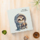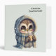 Cute Big-Eyed Owl Holding a Coffee Binder