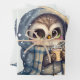 Cute Big-Eyed Owl Holding a Coffee Wrapping Paper Sheet