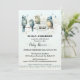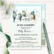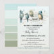 Baby shower invitation featuring an artistic design with cute birds singing about the soon to arrive new baby. The colours are pastel blue and green and are great for a baby boy.