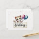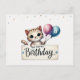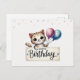 Cute Birthday Card with Happy Cat and Balloons