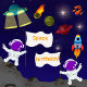 #space #cute #cartoon #UFO #comet #stars #planet #saturnus #rocket #astronaut #flag #moon
