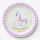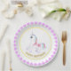 Paper plate framed with cute violet hearts and a cute birthday unicorn at the centre. "Happy Birthday" text can be personalized,