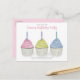 This design features cute birthday watercolor cupcakes, with a QR code for website online party information. a whimsical colourful pastel pink sweet, a birthday candles dessert treat cake, a stylish trendy calligraphy script text, a modern typography style font, an adorable kids child girl birthday, with blue yellow purple teal pink, an adorable kids toddler birthday party, a sweet food birthday baking frosting, for any kids birthday party invitations