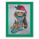 This cute little black and brown mixed breed puppy is eagerly awaiting a visit from Santa Claus to fill his Christmas red and green stripped christmas stocking with lots of gifts and other doggy goodies. He's wearing a very cute fur trimmed red santa hat with a sprig of holly and red berries. The puppy in the illustration is based on my own German Shepherd/collie dog crossbreed, he was one of the happiest little dogs anyone could ever wish for, a best friend and a constant companion. His name was Eddie (Edward when he was a naughty boy) This puppy illustration makes a cute and original Sister Christmas card. The big greeting card has a short but loving sentiment non-rhyming verse I'm sure he'll put a smile on the face of all sisters during the Christmas holiday time. The original puppy illustration is painted in watercolour. He partners well with the Christmas kitten who's stealing cream from the Christmas pudding.