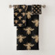 Cute Black And Gold Queen Bee Monogram Shower Curt Bath Towel Set