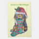 The cute little black and brown mixed breed Christmas puppy on this towel is looking very festive wearing his red santa hat with a sprig of holly in it. He's holding his red and green stripy Christmas stocking in his mouth as he eagerly awaits a visit from Santa Claus to fill it with lots of gifts and other doggy goodies. The cute little puppy dog christmas towel will stand out wherever he hangs. This cute towel white makes a lovely Christmas edition to any christmas kitchen this holiday time. The original puppy illustration is painted in watercolor and goes nicely with the Christmas tabby kitten. This is a customizable christmas towel, you can personalize it with your own text.