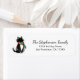 To the left of this return address label is an illustration of a black and white cat wearing a scarf, created in a whimsical, sketch style. Easily customize the black typography with your details.