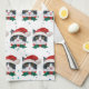 Cute Black and White Cat With Santa Hat Christmas Kitchen Towel