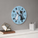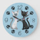Cute Black and White Cats and Paw Prints on Blue Large Clock