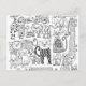 A fun cute black and white hand-drawn cats whimsical pattern postcard by Julie Nicholls©.