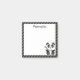 Cute black and white panda bear sitting down holding some green bamboo. A template across the top to add your own text or delete to leave blank. A black border with light grey diagonal stripes.