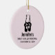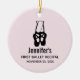 Ballet recital ornament with a black illustration of a ballet dancers slippers and her legs. Ballerina is standing on her toes, en pointe.