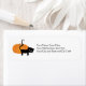 Cute black Halloween cat is standing by a pumpkin, wishing everyone a Happy Halloween! Include your name and address for a fun Halloween return address label!
