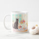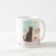 Sweet simplicity and feline cuteness overload as you sip your favorite brew! This meowy marvelous mug (which can be personalized!) makes an ideal gift for cat and tea lovers alike. This delightful design blends warmth, comfort, and a touch of playfulness. Whether displayed on this delightful mug, or on its matching kitchen tea towel calendar, this cute black kitty, ready for her tea party, gives us the reminder to slow down and savor life’s simple joys.