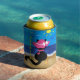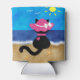A fun cat lovers can cooler featuring a cute black cat in a pink bonnet sitting on a sandy beach and ocean waves enjoying the sunshine! Customize this fun cat can cooler for your favourite cat lover!