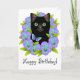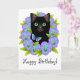 Cute Black Cat Floral Magic Happy Birthday card