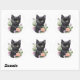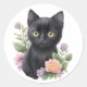 Cute Black Cat Floral Whimsical Classic Round Sticker