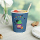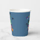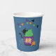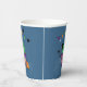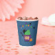 An adorable blue paper cup with a black cat hiding behind a cupcake with a green frosting . It is perfect for a kid's Halloween party . Look for the matching paper plates .