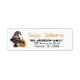Happy Halloween return address labels with a cute black cat in witch hat and a smiling, carved pumpkin with custom, personalized text.