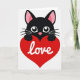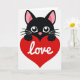 Cute Black Cat Love Heart Card