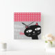 Cute Black Cat Pink Polka Dots Add Your Name Square Wall Clock