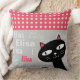 Cute Black Cat Pink Polka Dots Add Your Name Throw Pillow