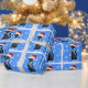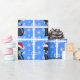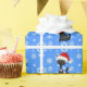 This holiday Christmas wrapping paper features a cute black Siamese cat wearing a Santa hat with a blue and white snowflake background. Some graphics by artwork©delightful-doodles.com *