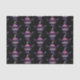 Tissue paper with a fun Halloween themed illustration for cat lovers. A big-eyed black cat wearing a large black witch's hat with a purplish pink belt around the brim.