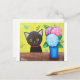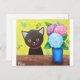 Cute Black Cat With Flowers Kitty Cat Folk Art Postcard