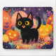 Cute Black Cat with Jack-o’-Lanterns - Mousepad