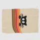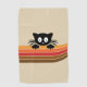 Abstract retro style illustration with yellow, orange, red and brown stripes and black cute cat decoration on beige background for every cat and retro lover. It is easy to customize it by adding your name/monogram etc.