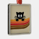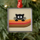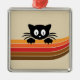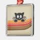 Abstract retro style illustration with yellow, orange, red and brown stripes and black cute cat decoration on beige background for every cat and retro lover. It is easy to customize it by adding your name/monogram etc.