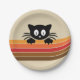 Abstract retro style illustration with yellow, orange, red and brown stripes and black cute cat decoration on beige background for every cat and retro lover. It is easy to customize it by adding your name/monogram etc.