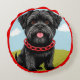 Cute Black Dog With Red Collar in Cartoon Style Round Pillow