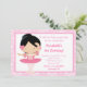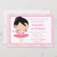Cute Black Haired Ballerina and Pink Damask Invitation