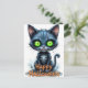 Cute Black Kitten Halloween Whimsical Cat Lover Postcard