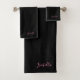 Modern Black Pink Script Name Bath Towel Set. Add your name to this black with pink script text bath towel set and treat yourself like the beautiful person you are.