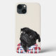 Cute Black Pug Dog With Glasses And Check Shirt iPhone 13 Case – a delightful and stylish accessory designed for dog lovers, particularly those who have a fondness for adorable pugs. This iPhone 13 case features an irresistibly cute black pug dog wearing glasses and a chequered shirt, adding a touch of charm and playfulness to your phone. Its unique design is bound to catch the eye of fellow dog lovers, sparking discussions about pugs, pets, and your distinct sense of style