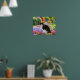 Cute Black White Cat in a Colourful Flowery Garden Poster