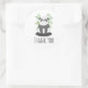 Thank you sticker with an illustration of a black and white panda bear sitting in some green watercolor bamboo. A little speech bubble with a heart inside. Cute design with a panda expressing his love.