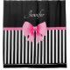 Cute Black & White Stripes Pattern Pink Bow Name Shower Curtain