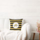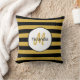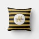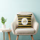 Cute Black Yellow Bee Stripes Name and Monogram Throw Pillow
