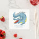 Cute alligator theme birthday party paper napkin featuring an illustration of a blue crocodile with a party hat with the text "Chomp, chomp." Perfect for a boy's party in the summer.