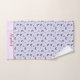 Cute bath towel set featuring pink, and dusty pink butterflies on a blue background make this a unique, girly addition to a bathroom decorated for girls. Plenty of space to customize your name on the pink hem edge.