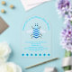 This awesome acrylic Baby Shower invitation features a graphic image of a cute blue baby boy bee with black legs and beady eyes. He has a pale blue fuzzy body with bright blue stripes and cute blue antennae on his fuzzy head. His delicate little wings have a pale blue mottled pattern on them.