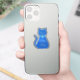 This awesome shaped sticker sheet features a digital art image of a cute blue cat with a curly tail. His eyes are pale blue with black pupils. He is wearing a pink bow in his hair and a shining blue collar round his neck with a blue token on it.