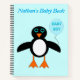 This awesome spiral notebook features a cute cartoon of a blue penguin with blue eyes, a little orange beak and a white tummy. The penguin is holding a powder blue balloon. There is pale blue text inside the balloon that says, “Baby boy”. This is the perfect gift for celebrating a newborn baby boy.