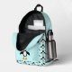 This awesome backpack features a cute cartoon of a blue penguin with blue eyes, a little orange beak and a white tummy. The penguin is holding a powder blue balloon. There is pale blue text inside the balloon that says, “Baby boy”. This is the perfect gift for celebrating a baby boy.