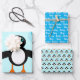 Cute Blue Baby Boy Penguin Wrapping Paper Sheet