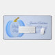 This awesome desk mat features a digital art image of a cute blue pumpkin with 3 different shades of blue getting darker towards the edges of the pumpkin. There is a green stalk attached to the top. A perfect design for celebrating a baby boy, especially at Thanksgiving. There is custom text so you can include a message and the gender of the baby.